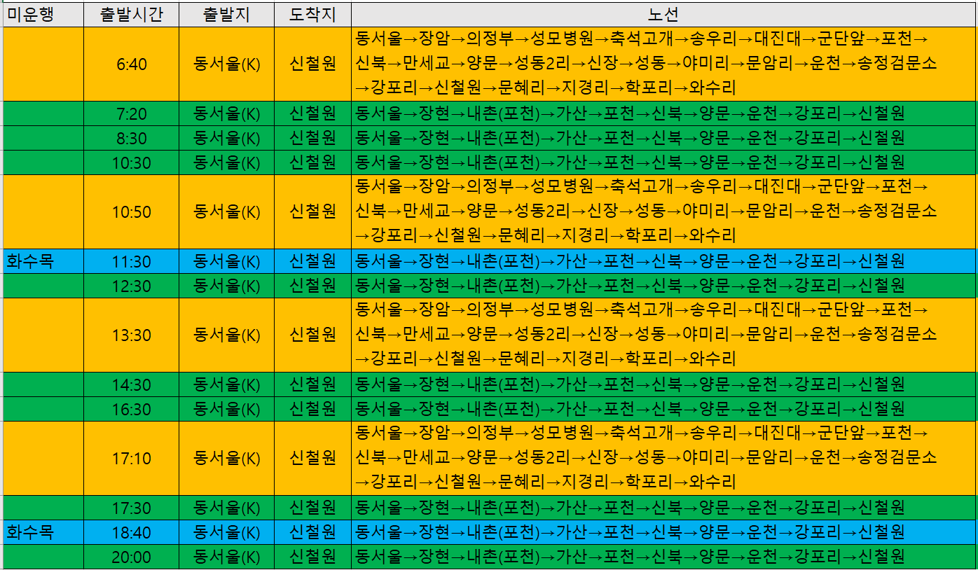 참고로 신철원 출발 동서울행은 찾을 수가 없어서 업로드를 못하니 양해를 부탁드린다.